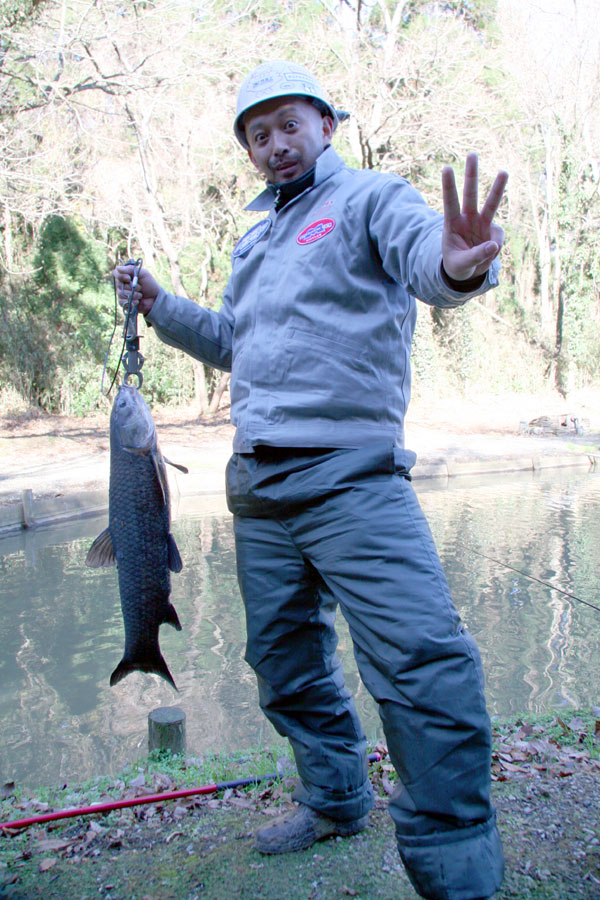 ジョイバレーは今時期、トラウトが釣れる管理釣り場として知られていますが、奥のほうの小さい池ではコイとアオウオが釣れるんです。
