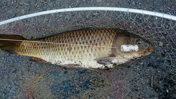 帰り支度をしていると、ヘチ狙いの9尺のウキが消し混んだ!すかさず鬼合わせ!