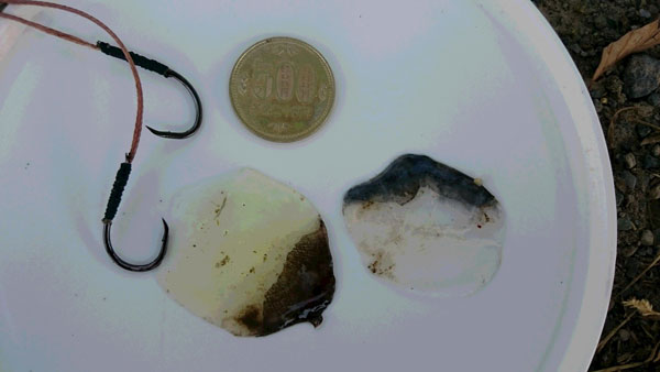 まず、ハリに魚肉ソーセージを装着しました→反応無し!