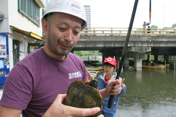 続いて尺越えギンブナを釣り上げ、さらにカメまで……。