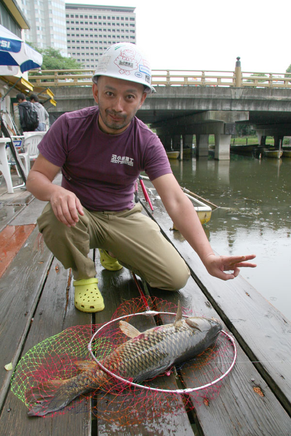 ボート乗り場からいきなり70センチ近いコイをヒット!