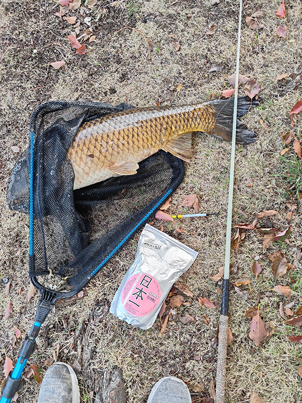 水はやや透明度があり鯉が来れば丸わかり。なので人影に逃げないか気になりましたが逃げる気配が無いのでいつも通りのウキ釣り。