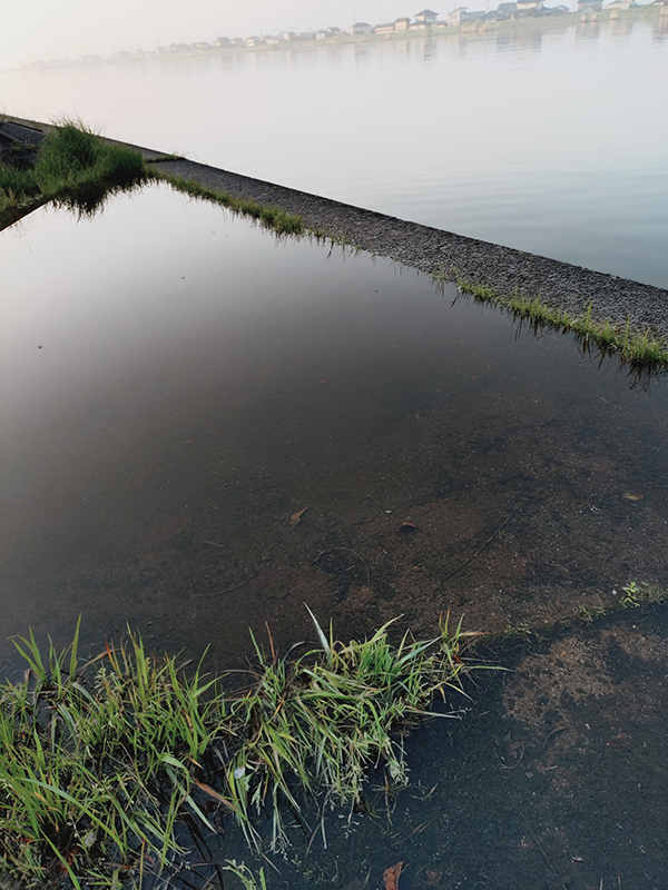 前日の雨で釣り座は水浸しでしたが、100均のビニールホースを使い、サイフォンの原理で排水(気休め程度)しました。