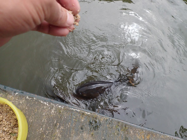 人が少ないってことで、お魚さんたちは飢えてます。