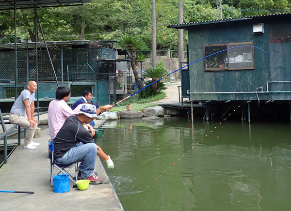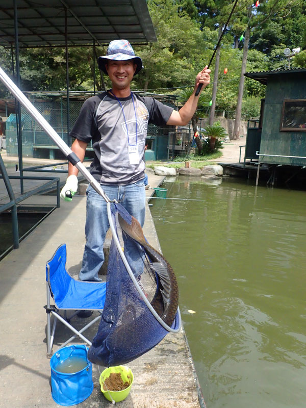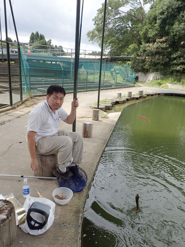 お好み焼きを作り終わった小林重工は希望者とともにヘラ釣りに。