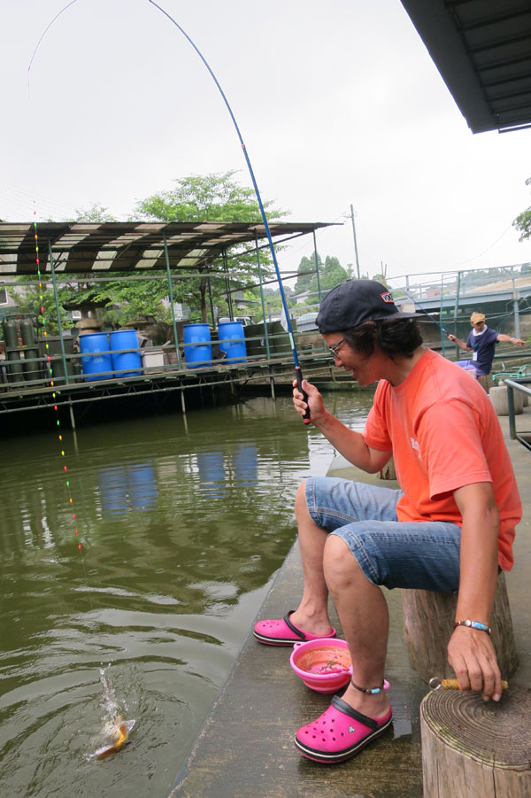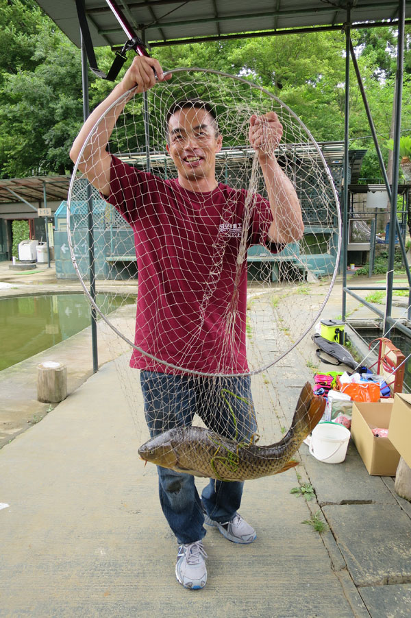 本来、コイ釣りは小さなコイ釣り堀のみですが、若旦那のご厚意により、ヘラ池の一部を使わせていただくことができます。