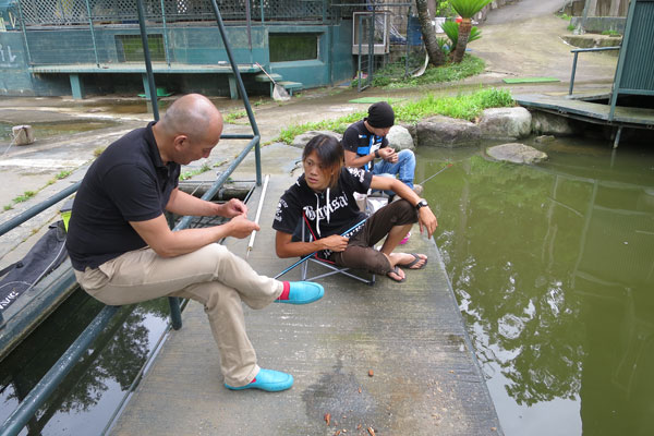 釣り池に行くと、すでに熱血釣師ファミリー(熱血なのは奥様)がじゃんじゃん釣りまくってます。