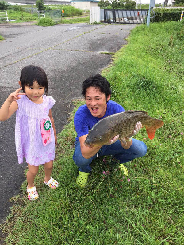 下流には排水機場があり、仕事帰りにパンを撒いて様子を見ていたところ…7月24日あきらかに大きな魚影が!!
