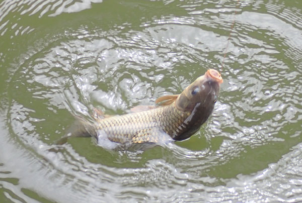 ヘラ池のコイは、普段釣られてない(もしくはヘラ釣り仕掛けをぶっちぎることに慣れてる)からか、とってもよく引きます。