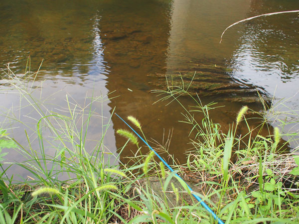 つーことで、589EX波泡度+釣子力1号で、対岸の足元付近狙い。