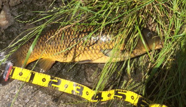 40分ぐらい、鯉以外の当たりと戦っていたら来ました!60㎝の鯉!