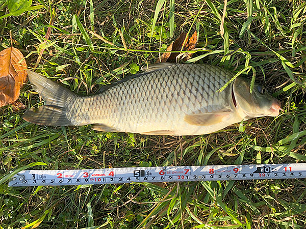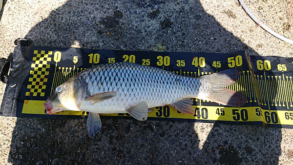 ノベ竿のコイ釣りでは、これくらいのが何本か釣れるのが一番楽しいように感じます。