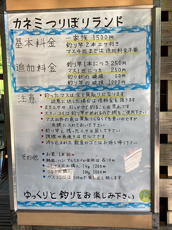 料金は一日ひと家族竿2本とマス4匹がついて1500円と格安です!