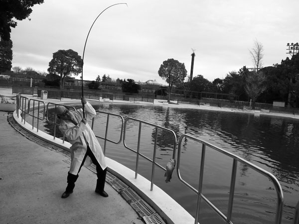 本日は、教授とともに、近日発売予定しようかと思っている(だいぶあいまい)竿「乗加亜2」のテストをしに、としまえんフィッシングエリアへ。
