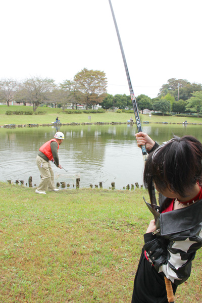 やっぱり足元狙い、ですが、人が間近にいると食わないかもしんないので、竿を横に置いて距離をとります(混雑してるときはできませんが)。
