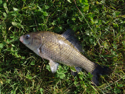 さらにもう10投ほどで……型のいいフナ。