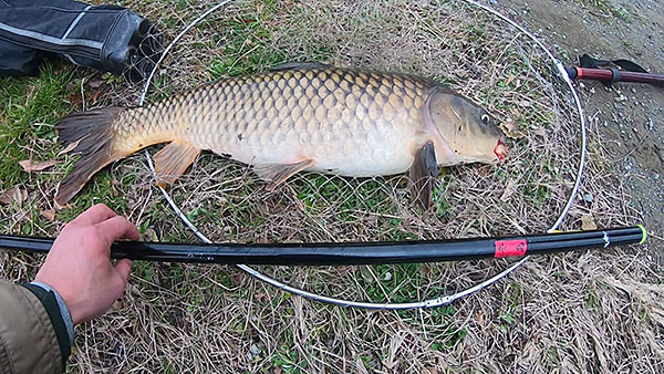 先日の懇親会で一本竿「冬島」の最初の購入者となってくれたコイ釣り専用ザクさんから、その「冬島」での釣果報告です!