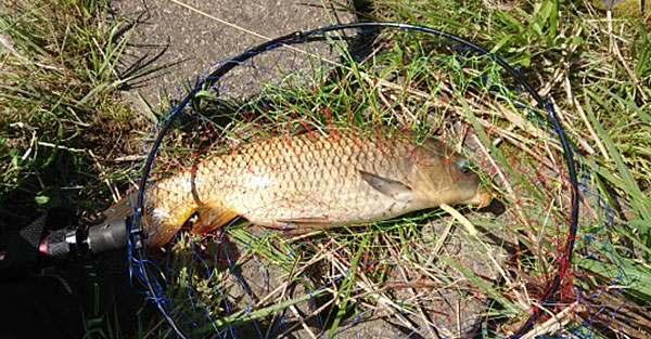 かかった時もよい感じ…?で鯉を上陸させることができました。