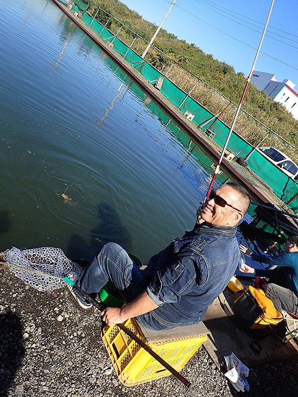 ちょいちょいお顔を出してくれて、589EX日本一を購入して釣りせず帰る……という感じだったモリタさんも、この日はみなさんの竿がつぎつぎと曲がっているのを見て我慢できず、釣り開始(笑)。