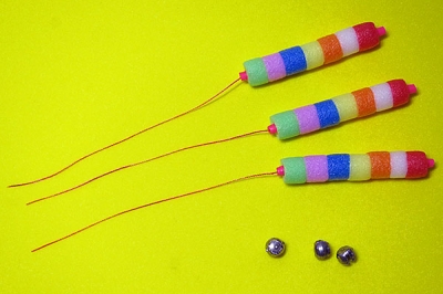 1/2〜2/3くらい沈むバランスのオモリが付属しています。