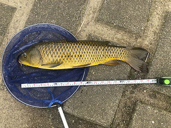 結果、開始後1時間以内に、約60センチの元気な鯉が釣れました!!